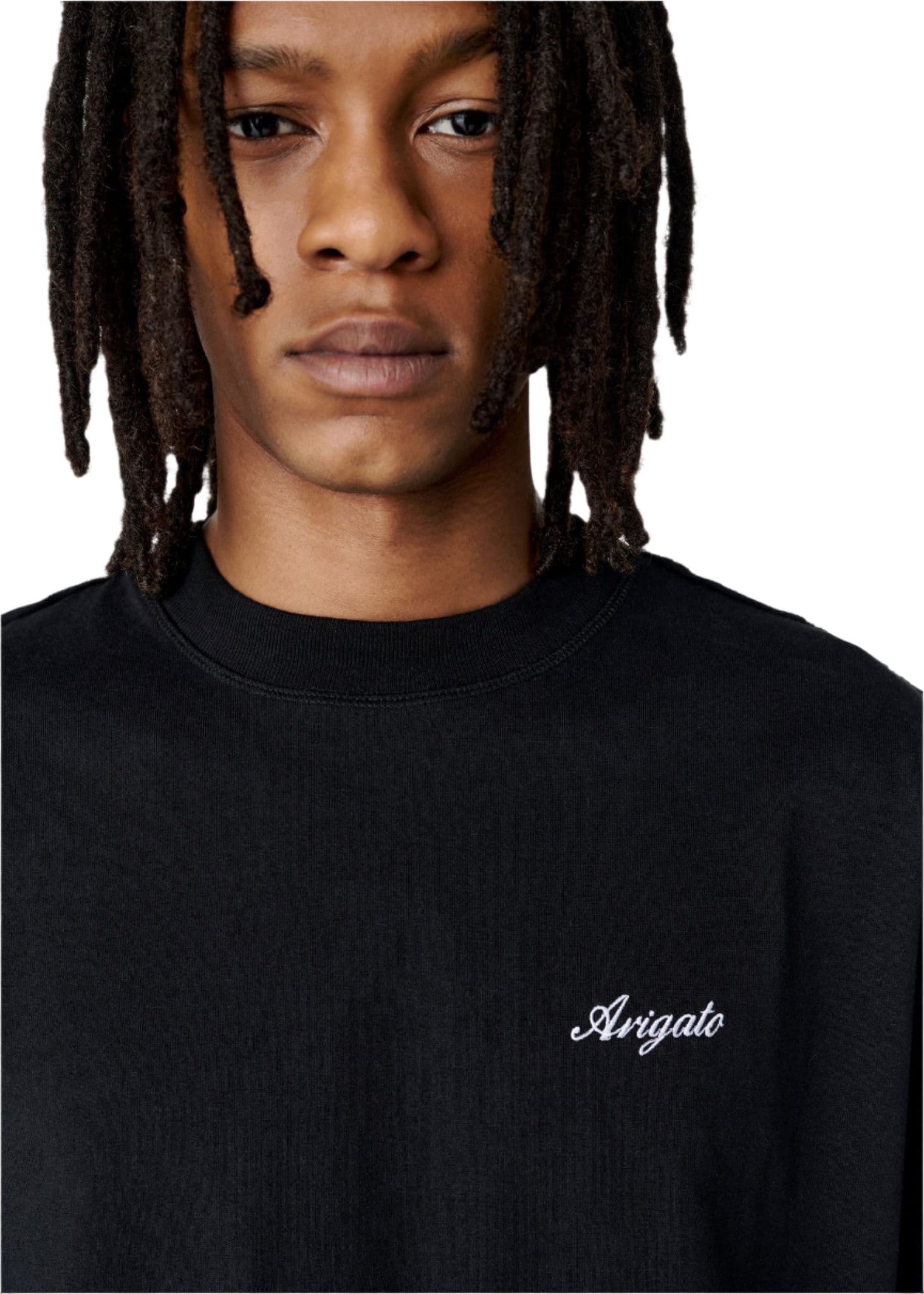 The oversized Honor T-shirt is crafted from organic cotton and features raw-edge seams at the shoulders. Arigato embroidery details the chest in a contrasting shade.