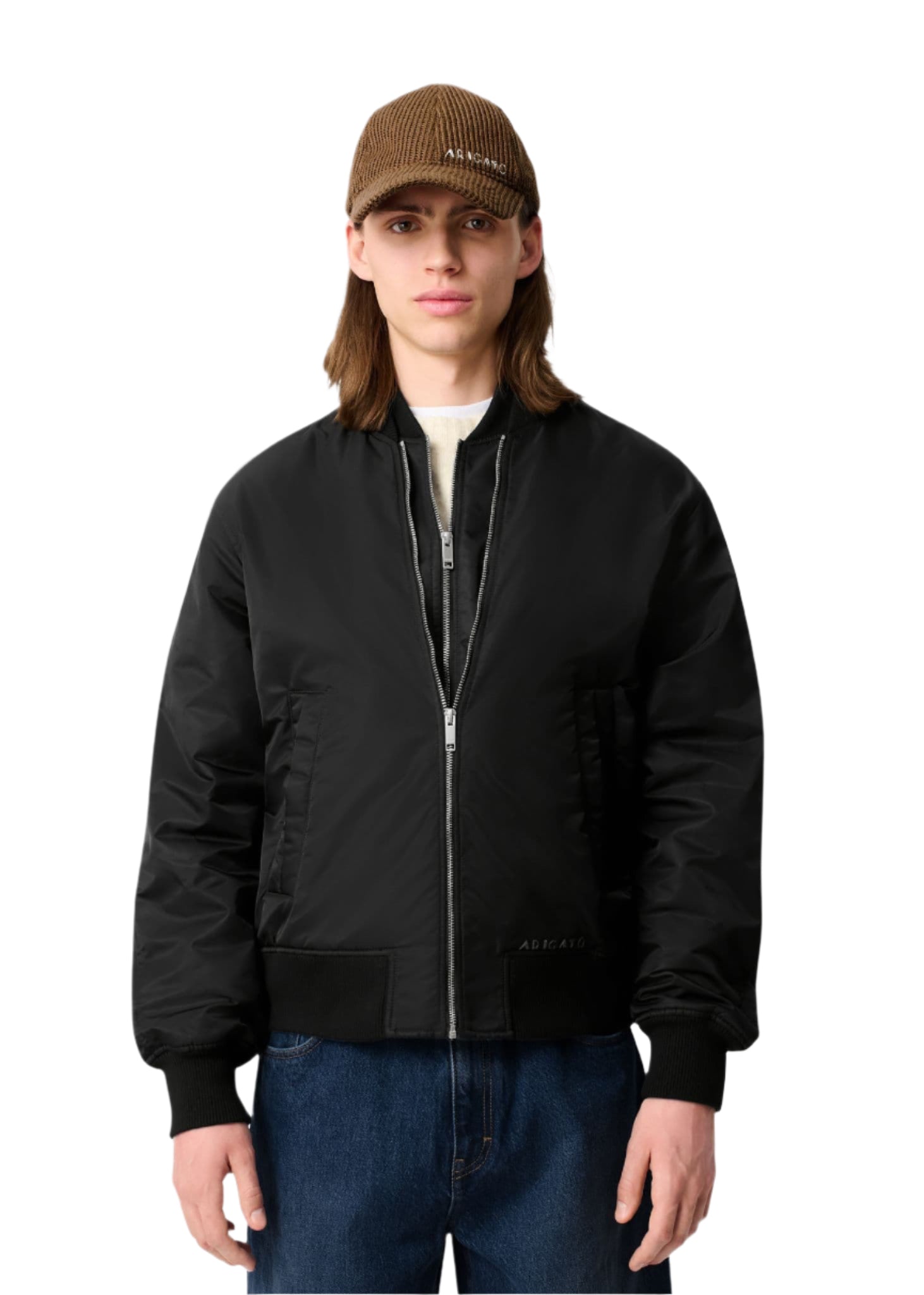 The Pen bomber jacket features a double-zip closure that creates a layered effect. Its lightly padded and features flexible ribbed-knit trims.This product is made from a delicate fabric with a unique finish. Please handle it with care.The model is 187 cm / 6'1" ft and wears a size M.