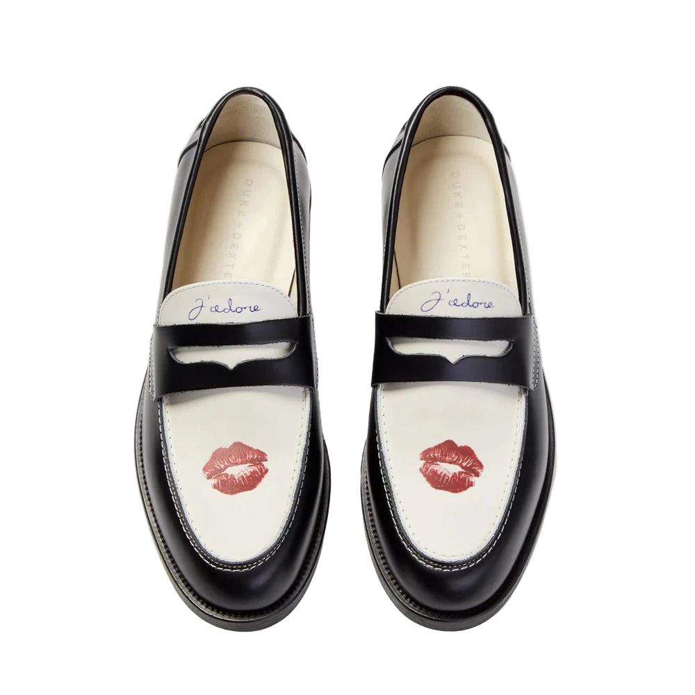 With contrasting shades of off-white and black, these Wilde Penny Loafers have been handmade in Europe, and feature a custom kiss print to the vamp. Kitted out with our custom-made rubberised sole that’s designed for year-round wear, they’re lined in leather that shapes to your foot as you wear them. Now, for the gents too.