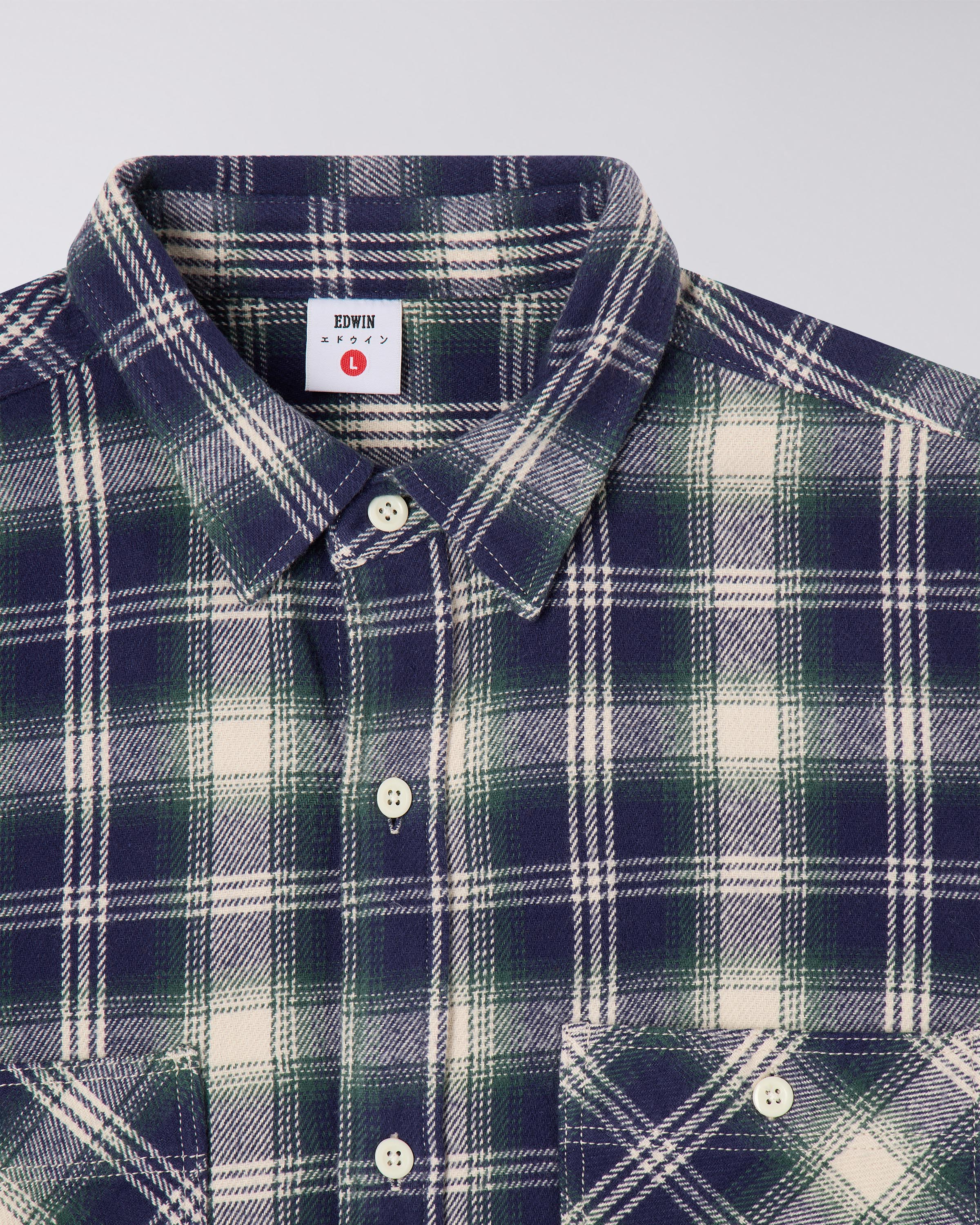 EDWIN WORK SHIRT LS - NAVY/GREEN