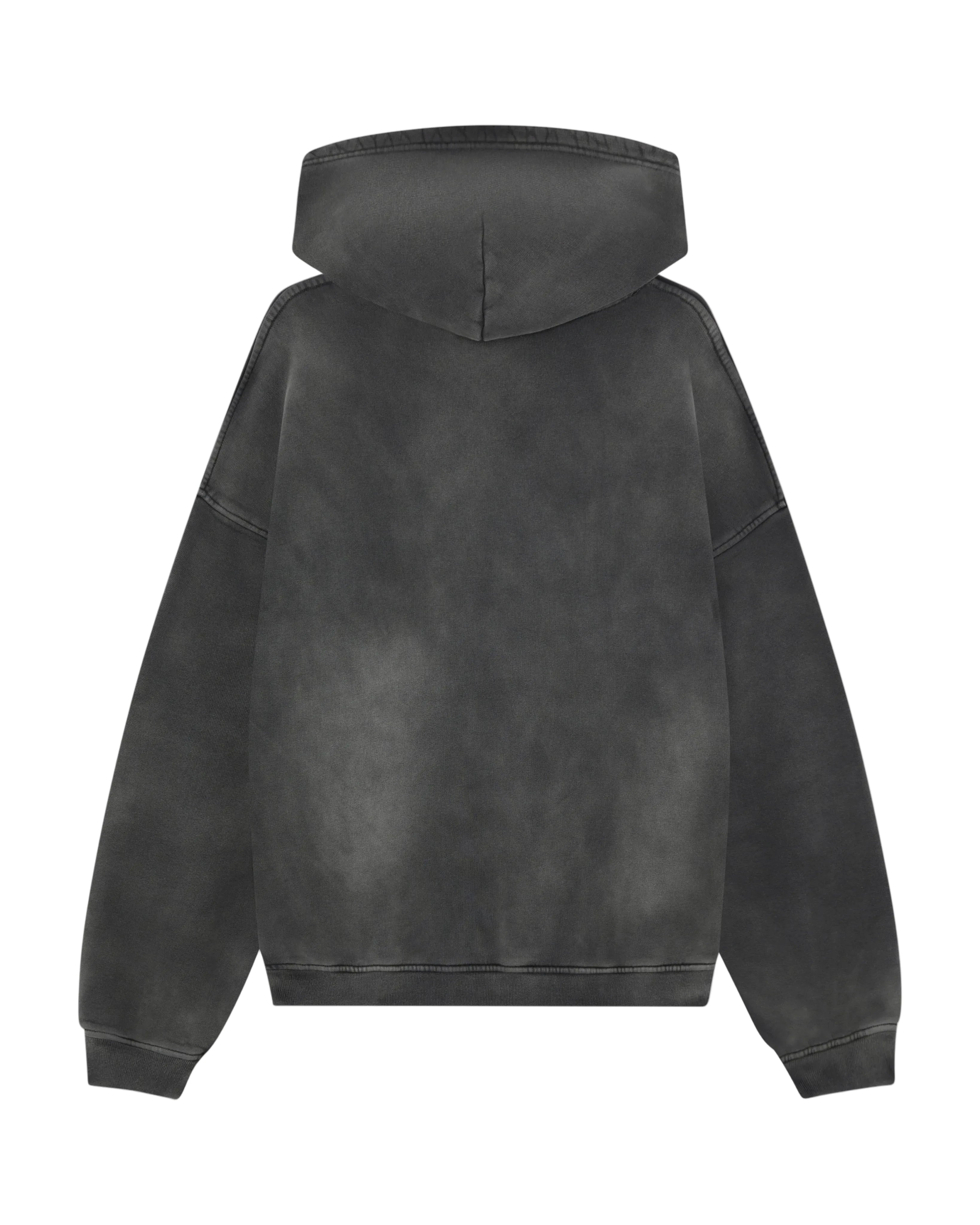 Each hoodie is put through a washing process and then hand-sprayed to create a sun-faded appearance. Because of this, every piece has its own unique wash and look, so no two are exactly the same.